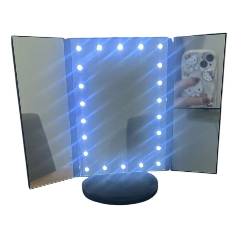 Su diseño incluye tres paneles plegables que te permiten ver tu rostro desde distintos ángulos, facilitando un maquillaje más preciso. Además, uno de los espejos tiene aumento, perfecto para detalles como delineado, cejas o colocación de pestañas.